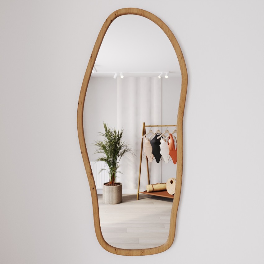 Зеркало изготовлено из высококачественного стекла, что делает его идеальным вариантом для тех, кто хочет добавить немного величия в свой интерьер. Деревянная рама, выполненная из массива дерева, добавляет зеркалу чувство теплоты и уюта, а также создает контраст с современным дизайном.