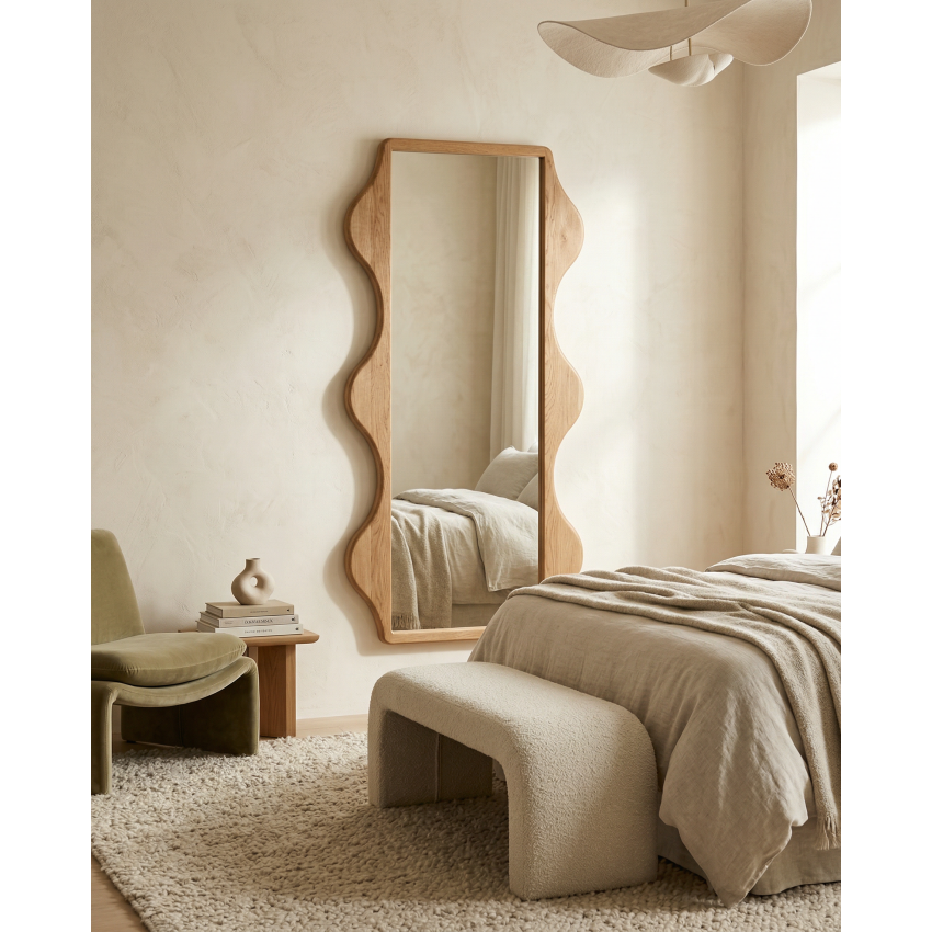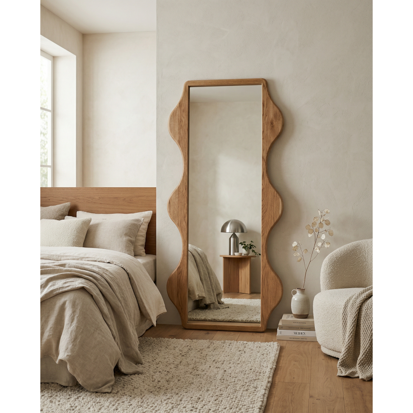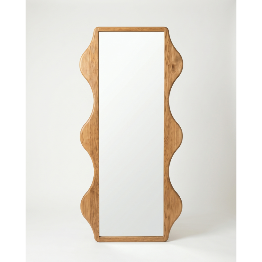Зеркало неправильной формы ВОЛНЫ в дубовой раме (155х70 см)